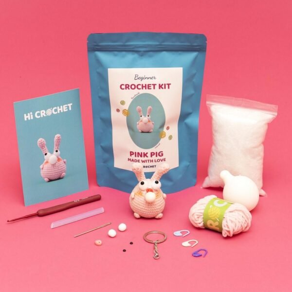 • Press Bubble Pink Pig Animal Crochet Kit