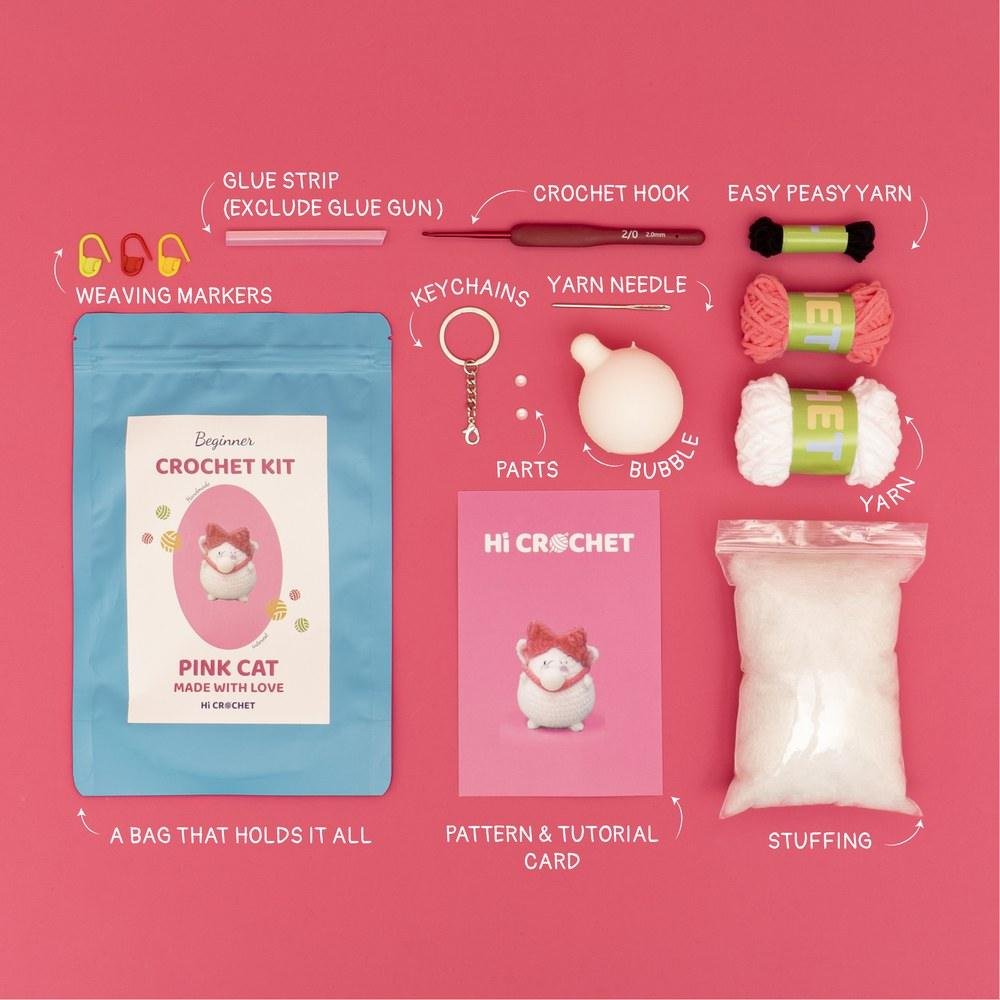 As a handmade item,there are easy starter crochet DIY craft kits kids gifts that have everything you need to crochet a cute Pink Cat. In addition, thehookee offers free detailed illustrations for learning how to crochet Pink Cat kits.